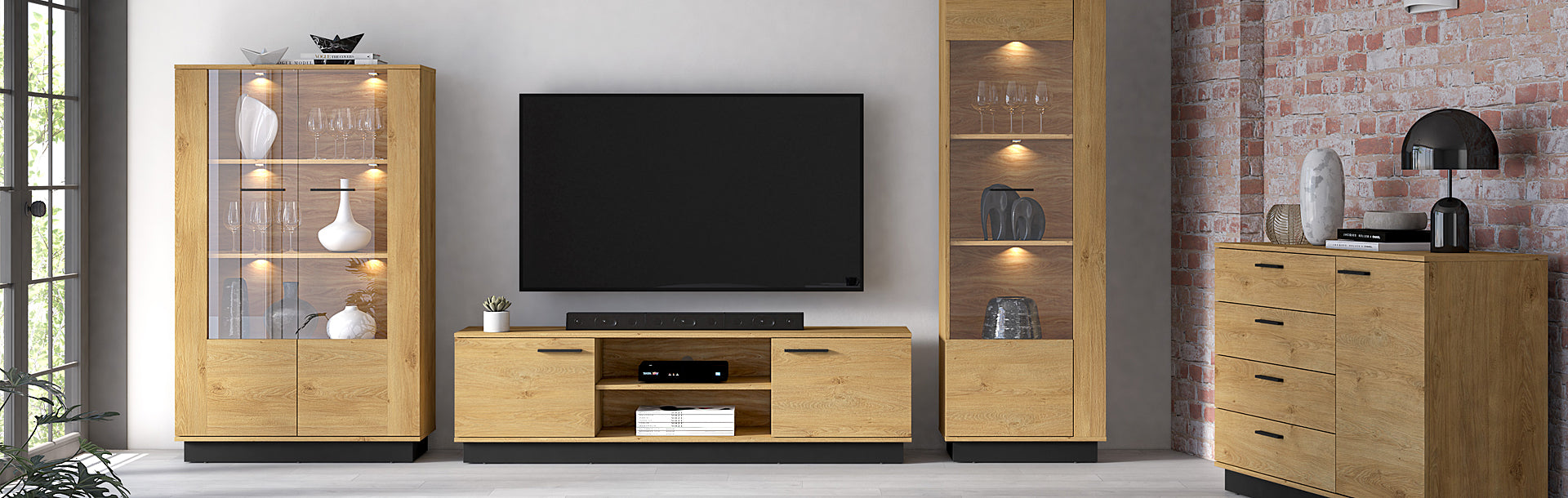 Commode, Buffet, Buffet en Chêne Élégant avec Base Noire - Style Moderne et Grande Capacité