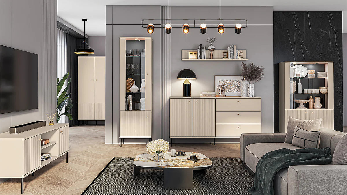 Armoire Moderne en Cachemire avec Finitions en MDF Fraisé